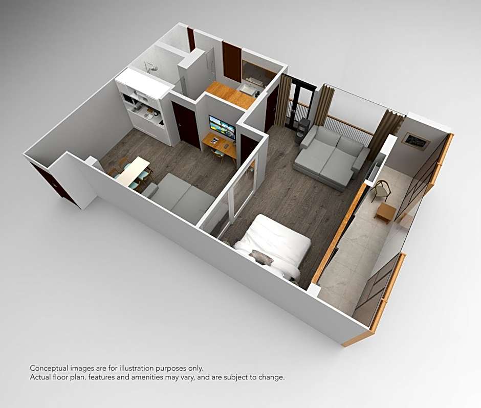 The Studio Room has double or twin room and a private living room with a sofa bed which is comfortable for accommodate up to 3 guest with separate 2 TV, a complete kitchen utensil and pantry will fulfill the necessity for cooking inside the room. A standing private balcony completes this well-appointed room category.